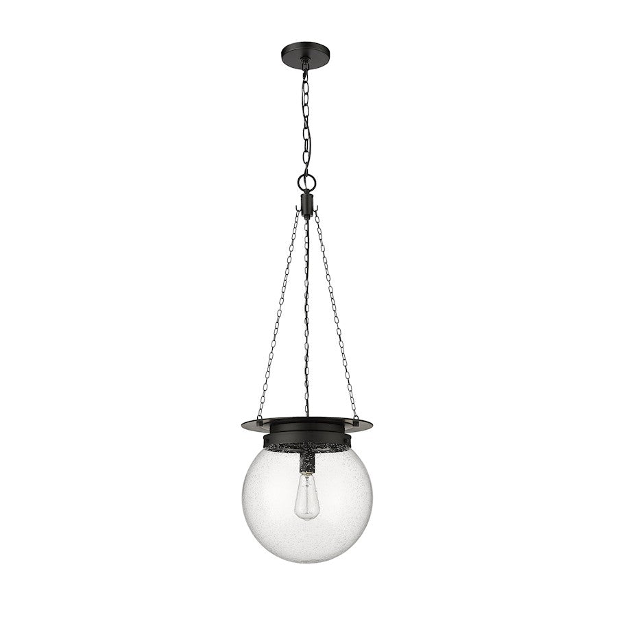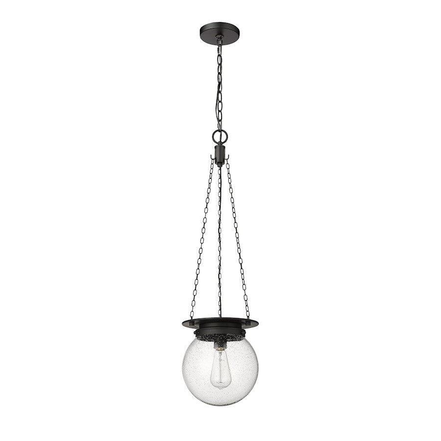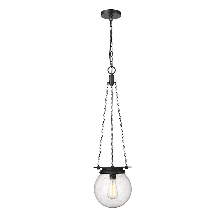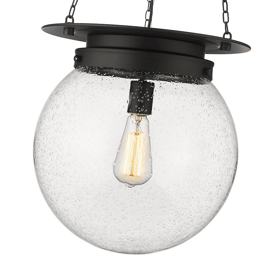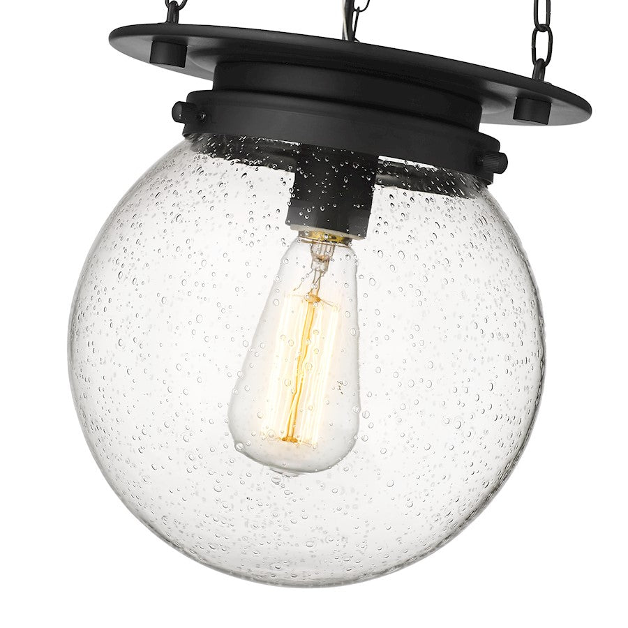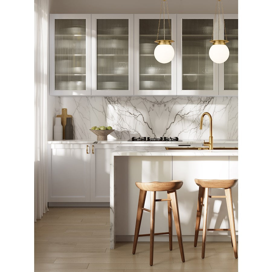 Harken back to Mid-Century Modern fare with a bit of schoolhouse charm thrown in and appreciate the easy feel of a light fixture that works wonders in both contemporary and transitional settings. This one-light pendant from the Calhoun collection delivers a shapely, symmetrical silhouette with a frame and accents featuring heritage brass finish metal. A festive clear seedy glass globe shade adds a dose of elegance suitable for a main living space, dining area, or foyer.