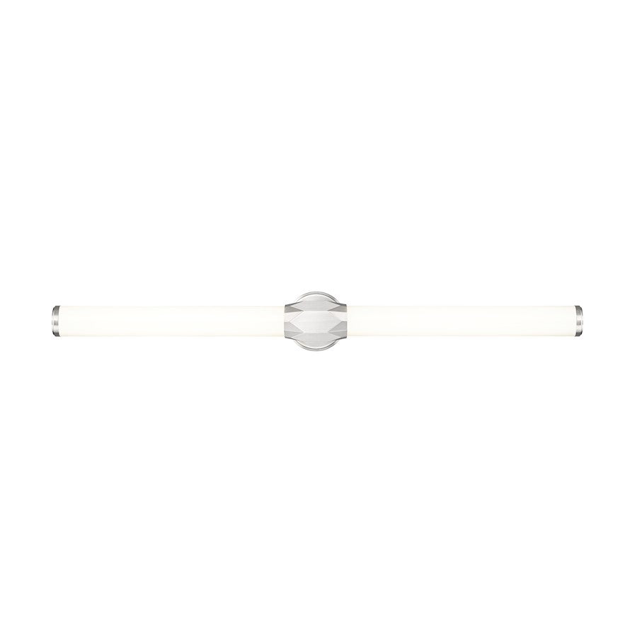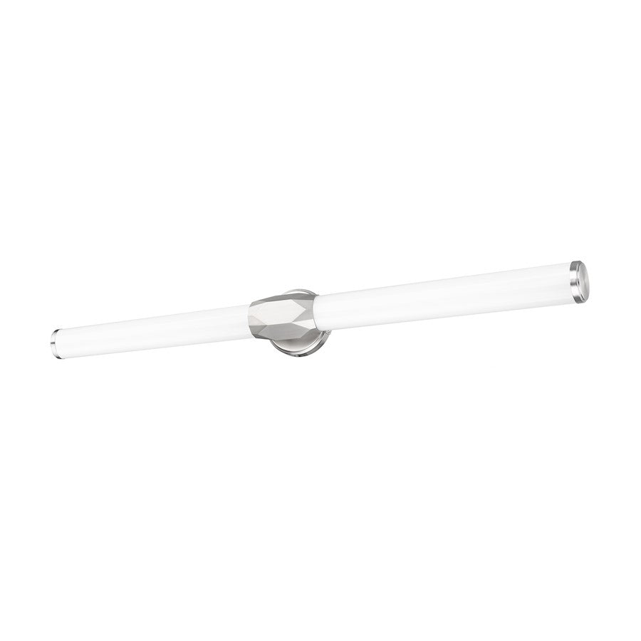 Elevate style with bold old and new design elements creating this one-light vanity light. Aluminum framing with a cool brushed nickel finish includes end caps and a prism-inspired holder, furthering the rich geometric and complete package of a light fixture with optional color temperature values.