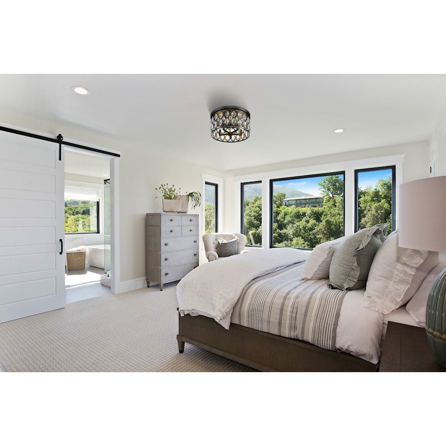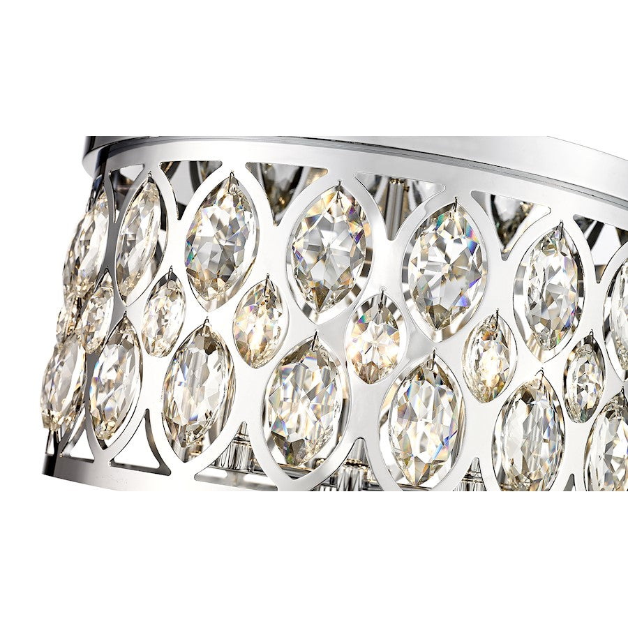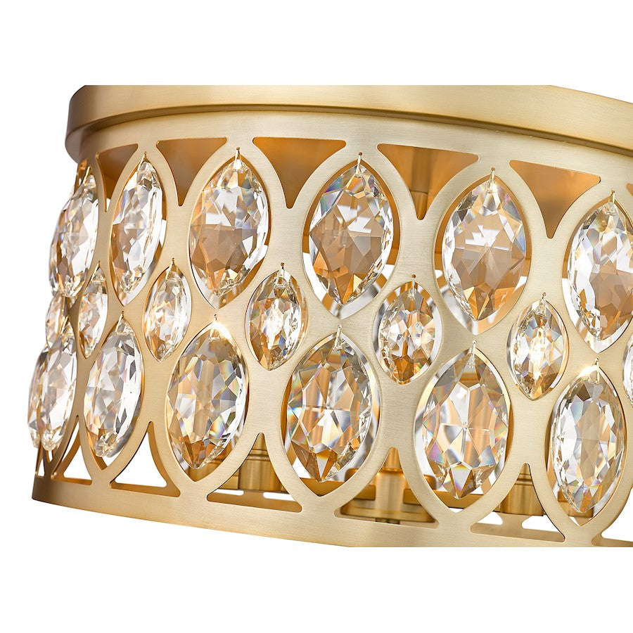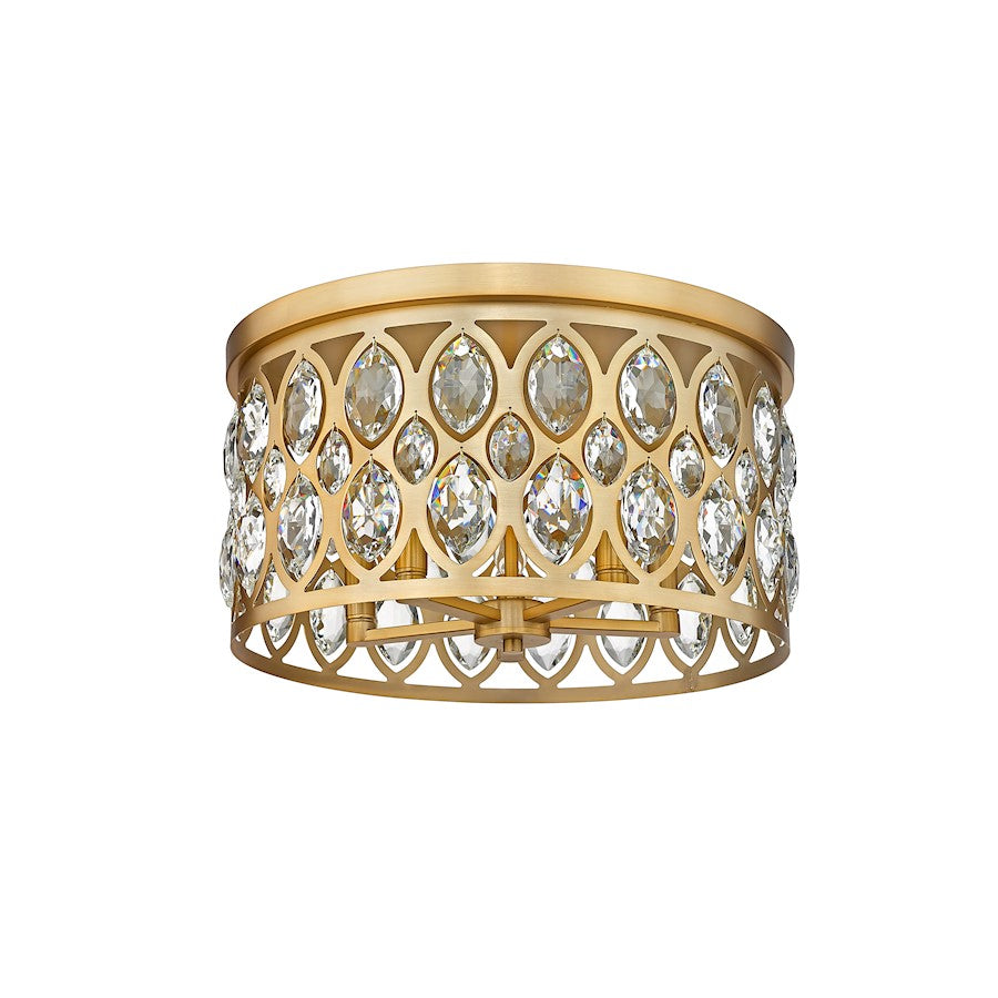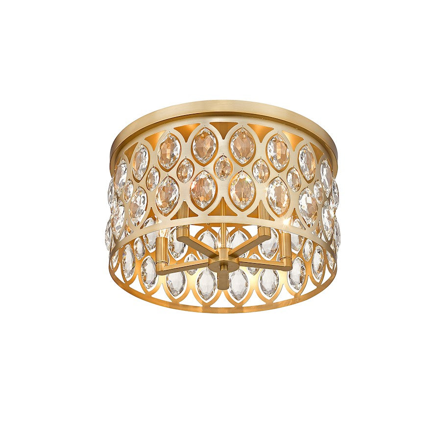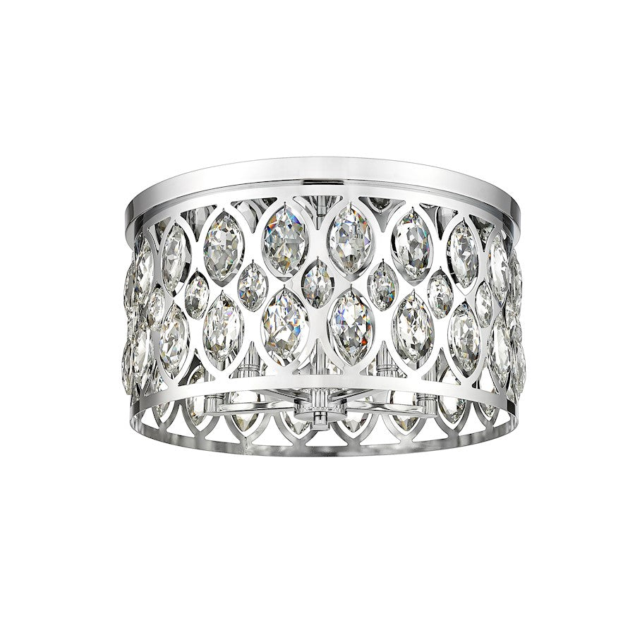 Decadence and glam flavor bring an unforgettable ambiance to this five-mount flush mount ceiling light. An extraordinary selection from the Dealey collection, this chic fixture is reserved for the most impactful of living spaces, adding the stunning look of crystal elements to an openwork metal frame with a chrome or heirloom brass or matte black finish. Five lights infuse suitable ambient lighting for a kitchen, dining room, or foyer, capturing the palatial feel of a classic.Canopy Dimensions: 18" L x 18" W