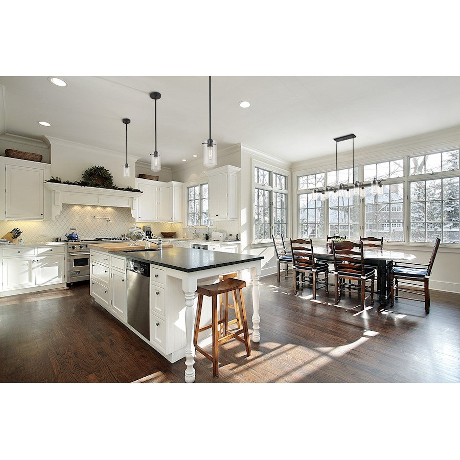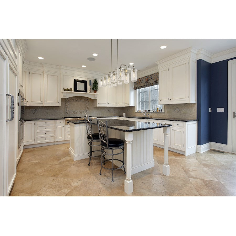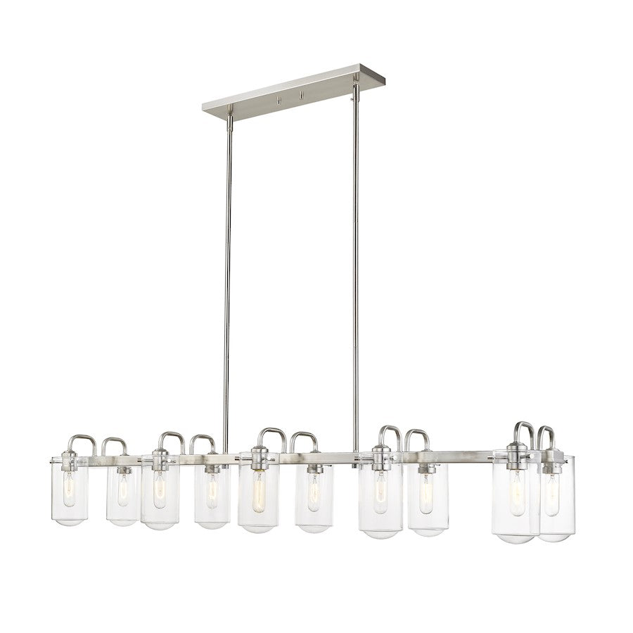 The epitome of modern design, this ten-light island pendant is sleek and stunning. A radiant brushed nickel or matte black finish streamlines any kitchen or dining room with elegance while clear glass shades create a delicate feel.