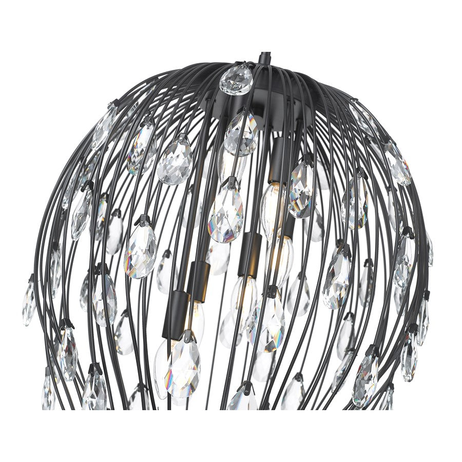 Embellish a chic room design with an artisan organic look in lighting. This six-light pendant delivers extra glam with its matte black open metalwork design contouring at its bottom, with shapely thin metal reed-like rods ending in bud icons made of radiant crystal. Chic botanicals add an earthy motif to a beautiful light fixture meant for living rooms, bedrooms, dining spaces, and entryways.