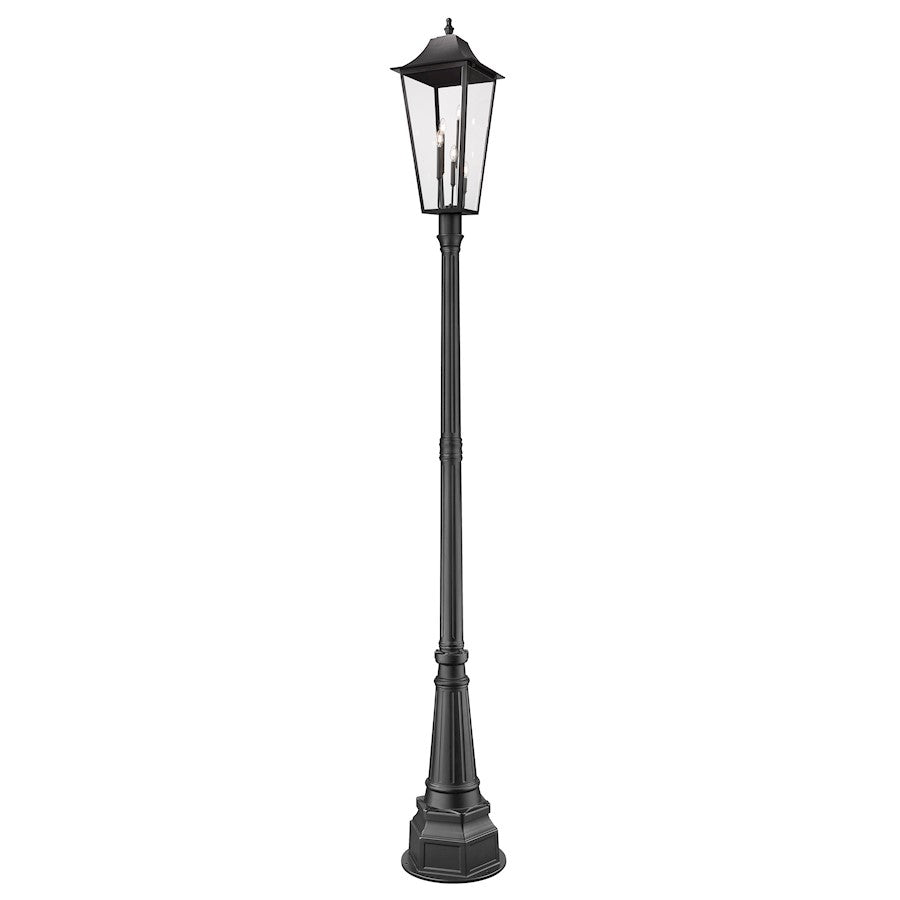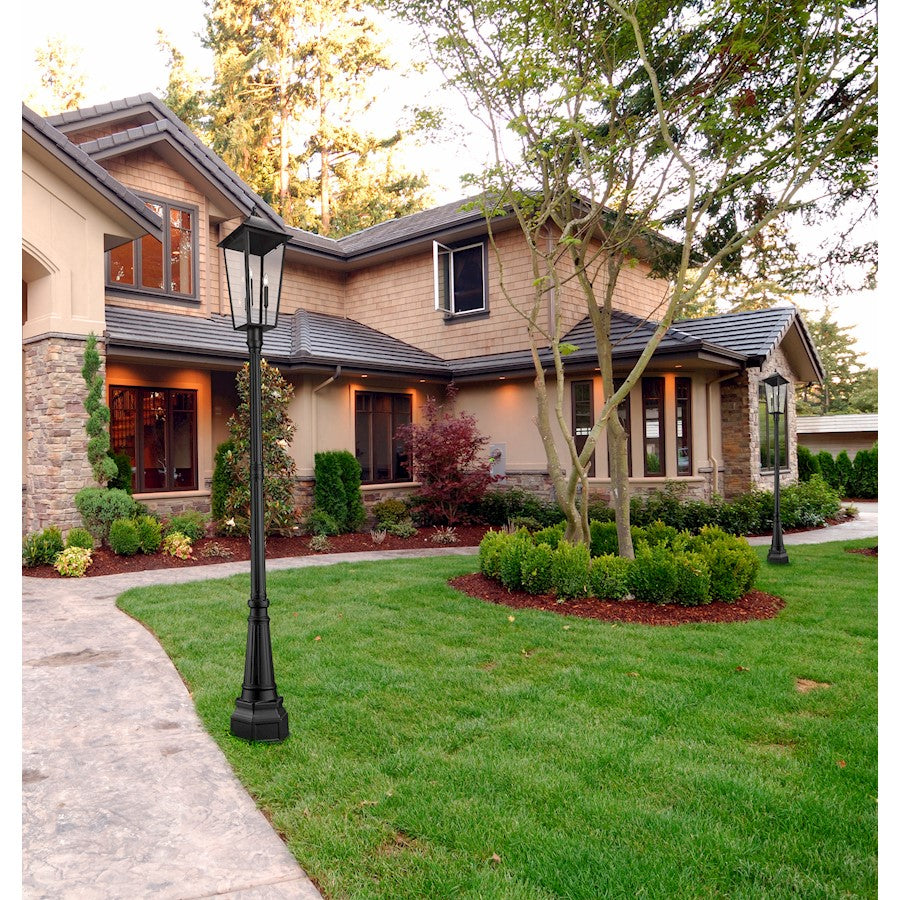 A decorative post adds character to the elongated lantern featured in this traditional three-light outdoor post light. A chic choice for a front walk, it sets the tone with a refined look that pairs a Coastal black finish with clear beveled glass panes for excellent illumination.