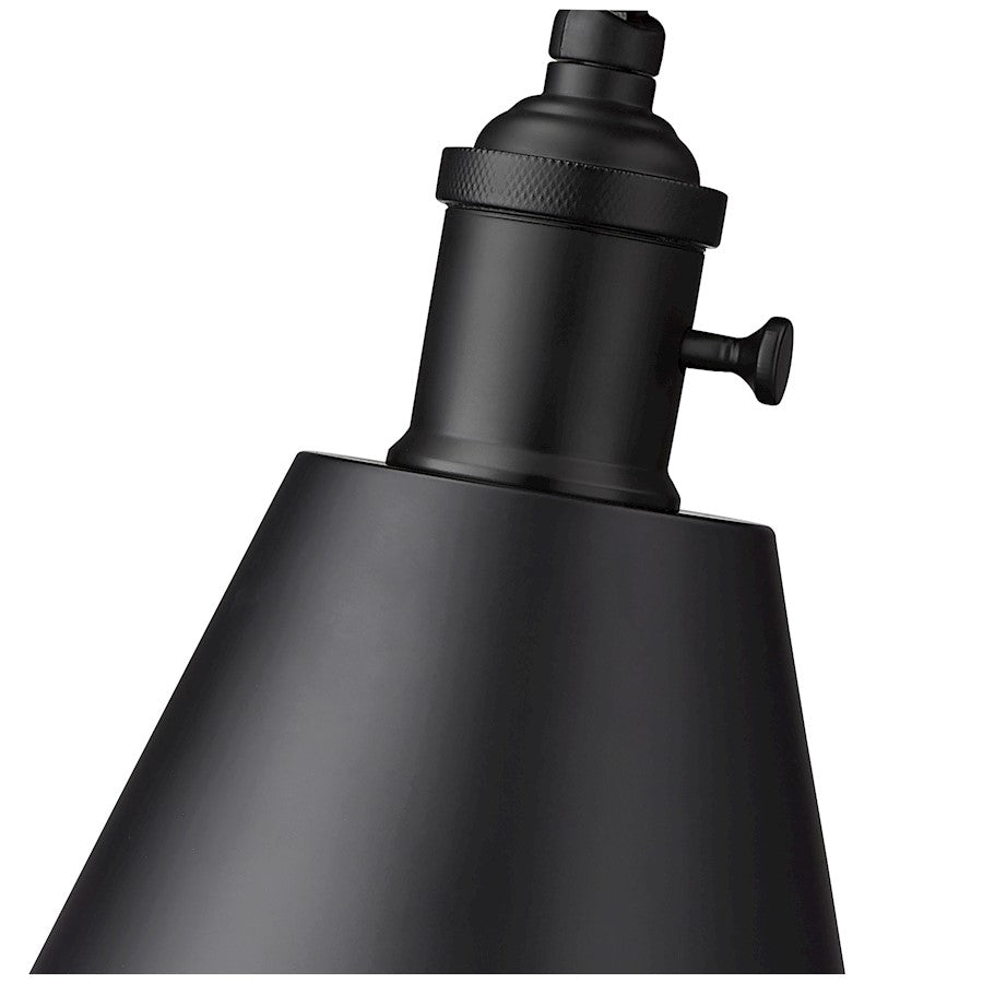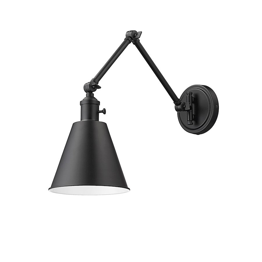 Mixed motifs offer an exquisite form of industrial style in a one-light wall sconce offering the perfect blend of glam and industrial design aesthetics. Constructed of bold matte black steel framing and a matching steel conical shade, it delivers utility in an adjustable configuration making it easy to achieve customizable lighting levels. Install through hard-wiring or purchase separate simple and portable cord-and-plug mounting to move from space to space.