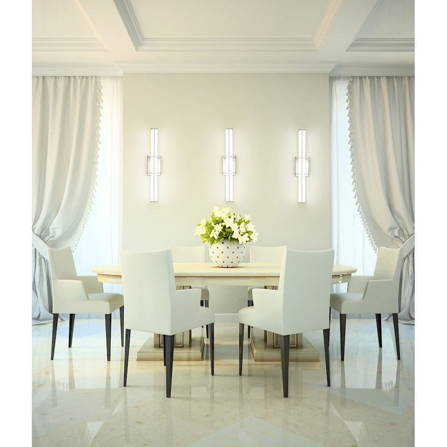 Brighten your modern vanity with the elegant simplicity of a dimmable LED bath light. Energy efficient, it's got a selectable color temperature for custom illumination, and delivers a rich, stylish look with a linear bracket design in a gleaming chrome finish that pairs perfectly with a frosted diffuser to create bright, true lighting for all your daily grooming.