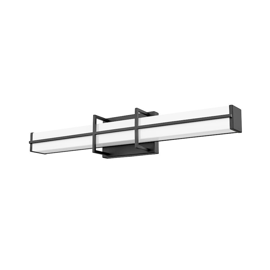 Brighten your modern vanity with the elegant simplicity of a dimmable LED bath light. Energy efficient, it's got a selectable color temperature for custom illumination, and delivers a rich, stylish look with a linear bracket design in a deep matte black finish that pairs perfectly with a frosted diffuser to create bright, true lighting for all your daily grooming.