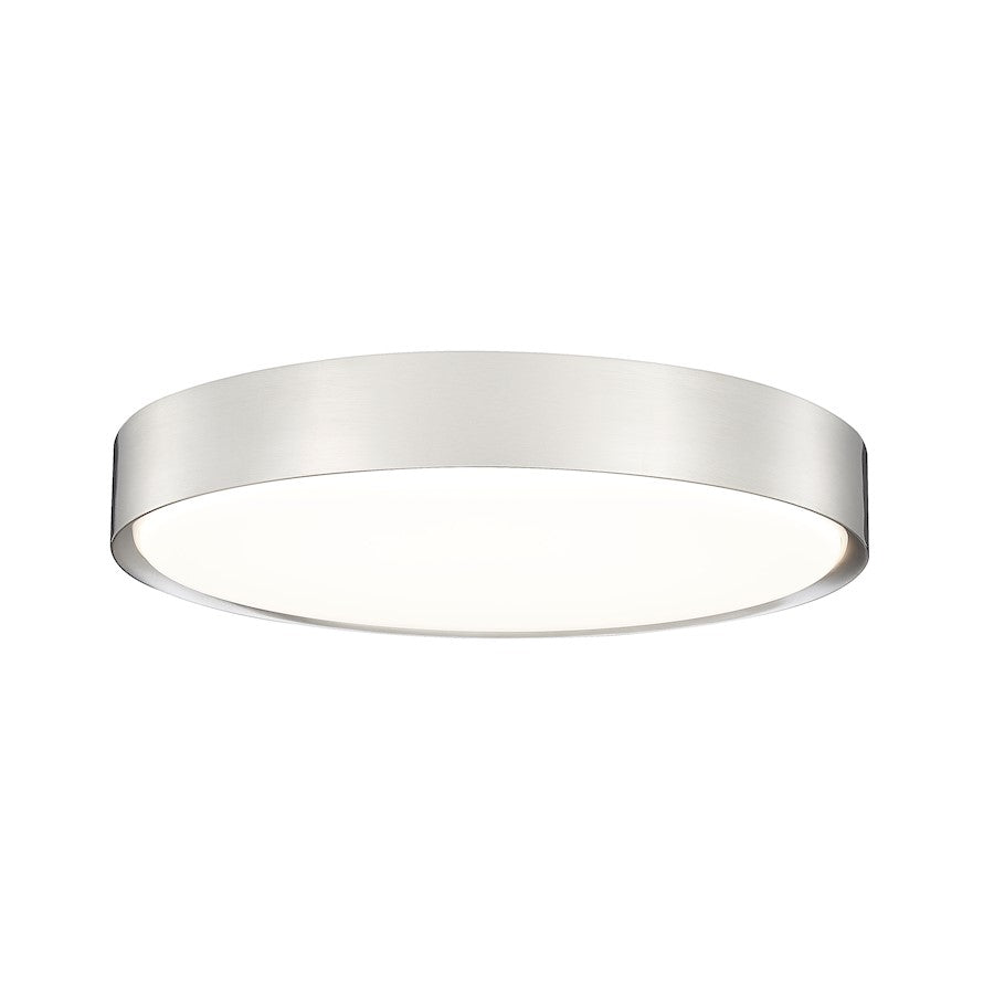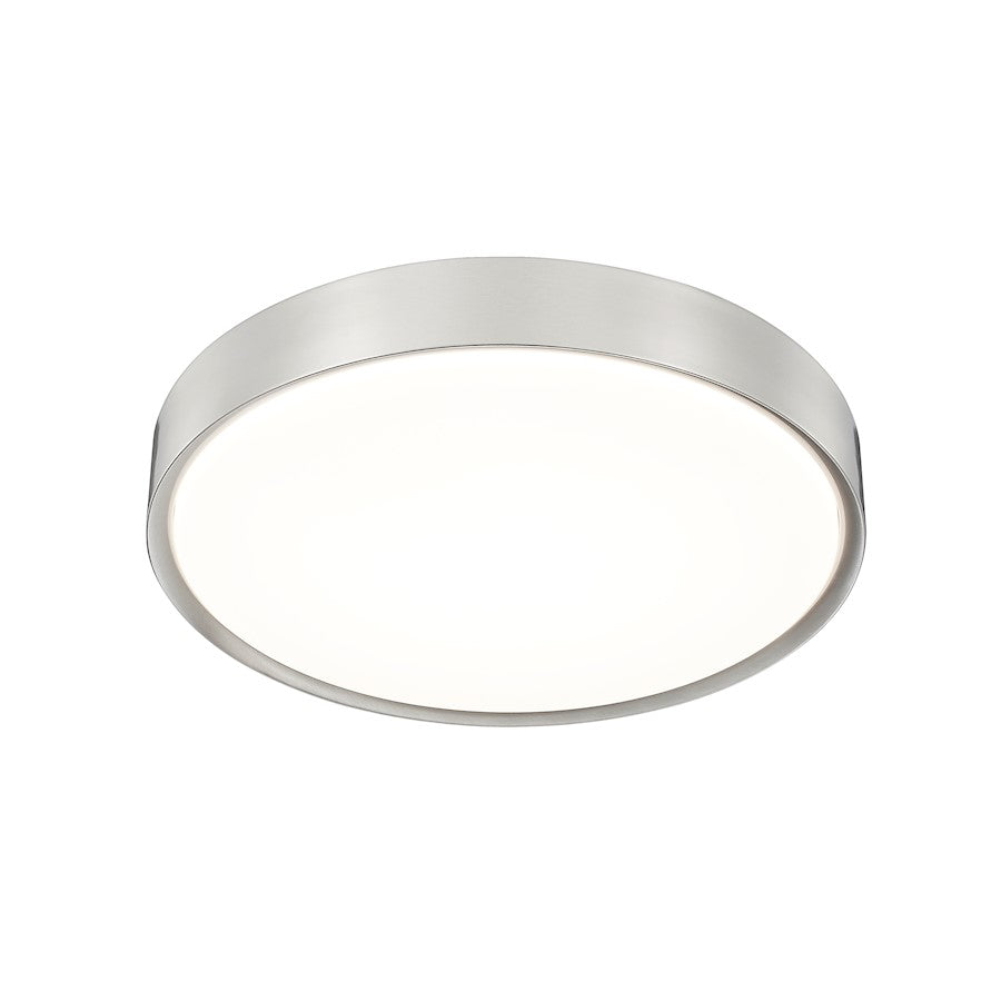 Take decor to new heights with the fresh look and feel of a modern one-light flush mount ceiling light. Its generous size is complemented with a sleek brushed nickel finish, offering the perfect complement to a rounded frosted acrylic diffuser, delivering beautiful illumination in a living area, den, or bedroom.