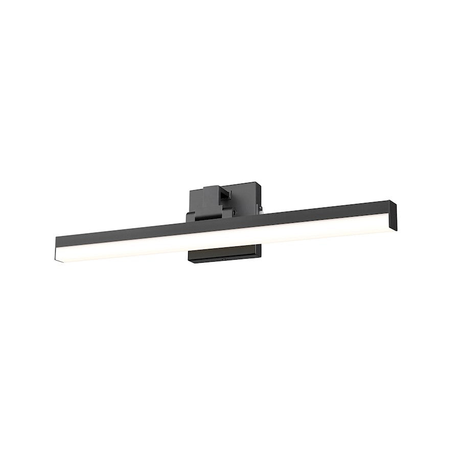 A streamlined design concept plays out nicely in both contemporary and industrial-transitional bath spaces with a one-light vanity light. Sculptural elements maintain symmetry and clean lines in a fixture fashioned of bold matte black finish aluminum with a frosted plastic diffuser, emitting dimmable lighting with options for perfecting the level of ideal white color.