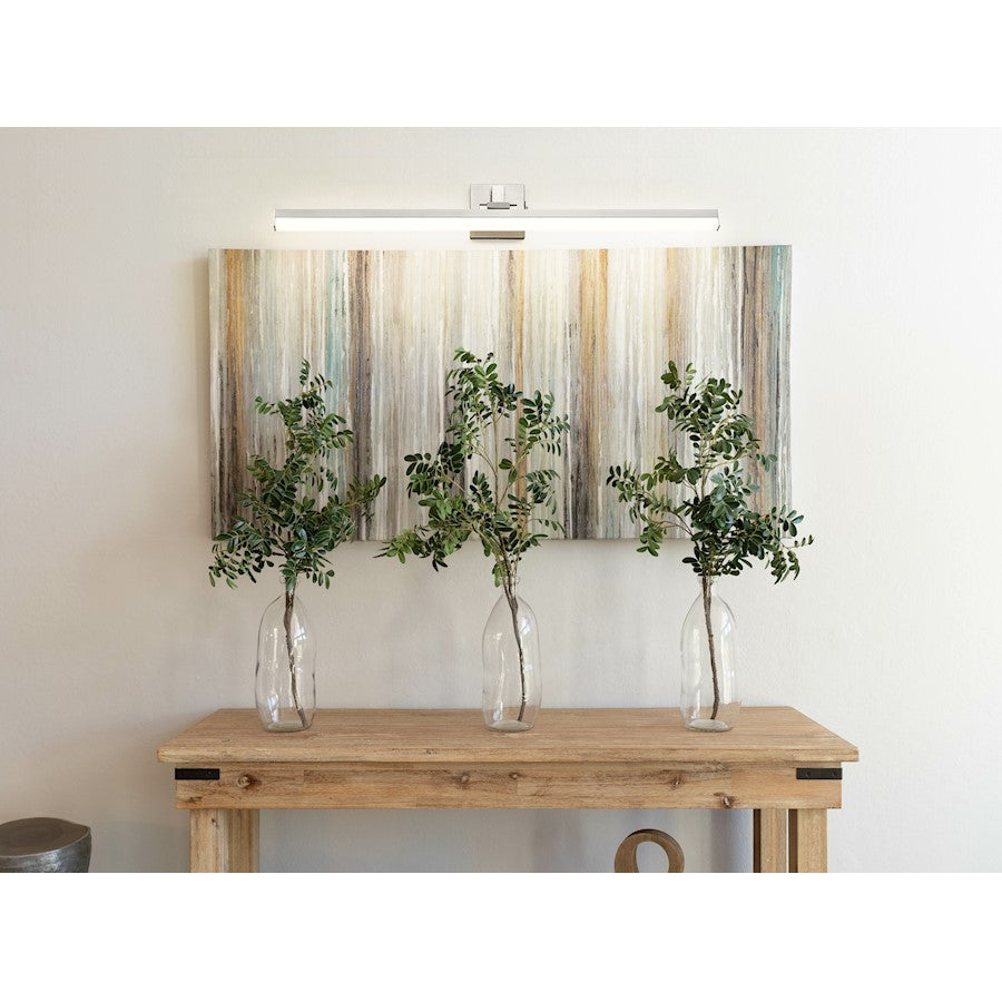 Bring a simple yet elegant look to both contemporary and industrial-inspired transitional bath spaces with this one-light vanity light. Sculptural elements maintain symmetry and clean lines in a fixture fashioned of cool brushed nickel finish aluminum with a frosted plastic diffuser, emitting dimmable lighting with options for perfecting the level of ideal white color.