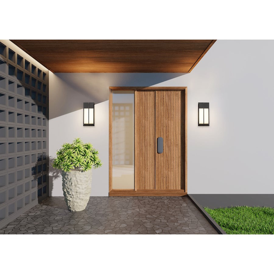 Choose this two-light outdoor wall light to enhance any exterior setting. Clean lines perk up the look of a light blending of Coastal black painted metal and a silk white flat panel shade. Delivering a glow of dimmable illumination that can be adjusted to suit every occasion, it's perfect for every setting.