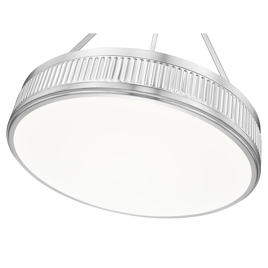 Urbane sophistication is the watchword in this modern three-light LED pendant. From the Quinn collection, it's an updated version of mid-century charm, pairing a shallow drum with fluted bands that create superb texture and dimensionality. Its satin nickel finish complements in any setting, while a Z-Lite EZ change LED module tucked within is light color selectable, dimmable, and energy efficient.