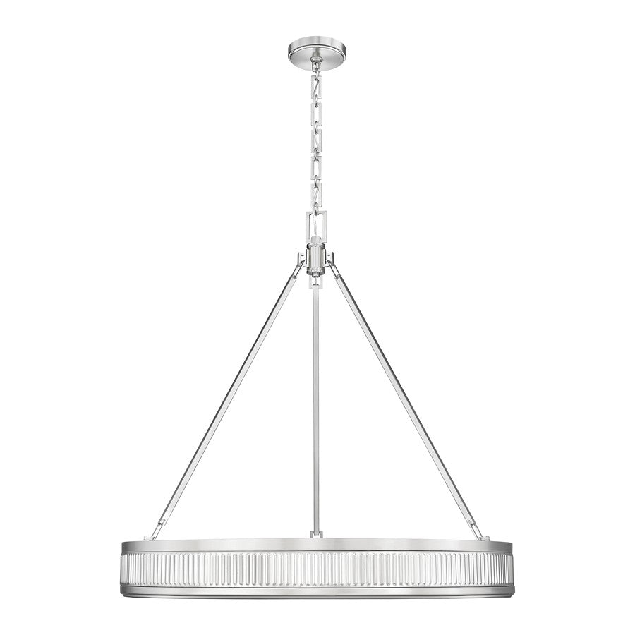Elevate inviting decor with the mid-century charm of a modern three-light pendant from the Quinn collection. Equipped with a Z-Lite EZ change LED module, it features a shallow drum silhouette complete with fluted banding that's rich in texture and dimensionality. The pendant offers generous size, perfect for living and dining spaces, and includes light color selectability and dimming capabilities.