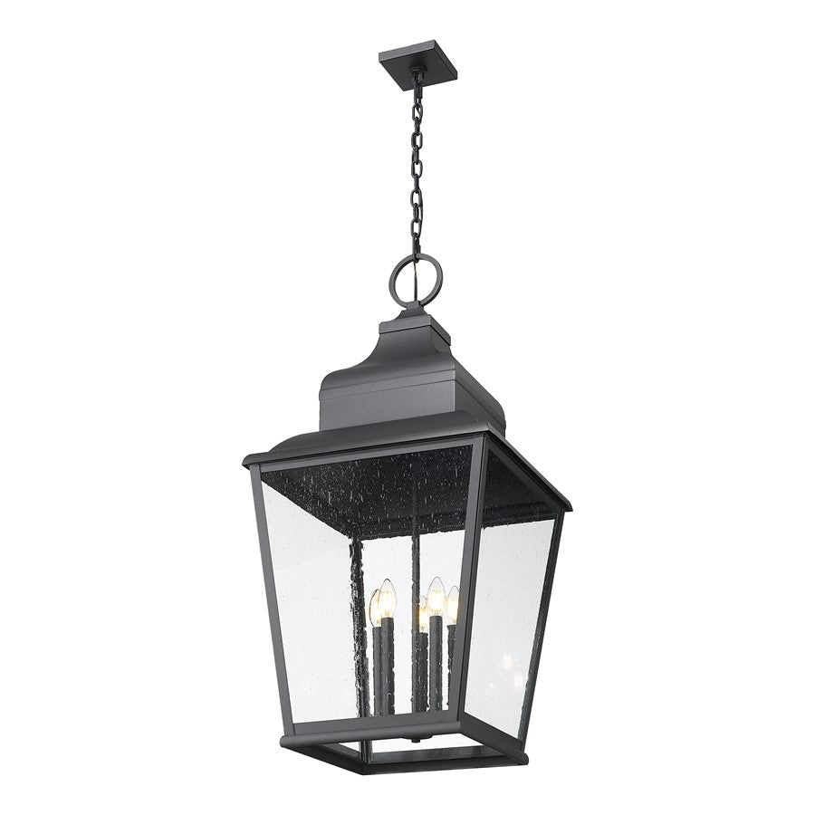 - The Raphael collection, with its Black finish and clear seedy glass panels, is the perfect accompaniment to illuminate the exterior of traditional-style homes. Featuring rich details on the multi-tiered cap, scroll hook, and backplate, there is a variety of sizes, candle clusters and mounting options available to suit any type of outdoor installation from post mounts and hanging lanterns to wall-mounted versions.