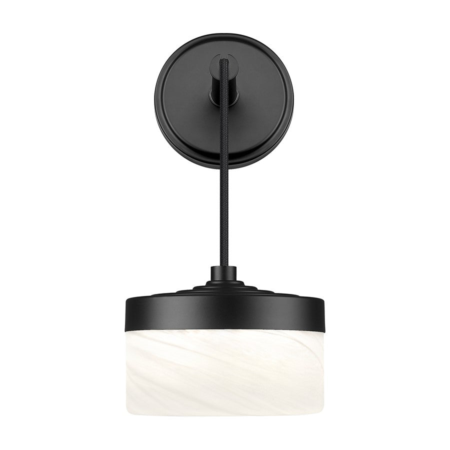 At the edge of a mirror or along a hallway wall, this matte black one-light LED wall sconce introduces a compact accent of deep metal and clouded glass. The integrated light source casts a focused, flattering glow that works beautifully for bedtime reading, getting ready in a powder room, or guiding late-night trips down the hall. Used in pairs beside a vanity or spaced in a sequence along a corridor, it stitches the space together with a calm, contemporary touch.