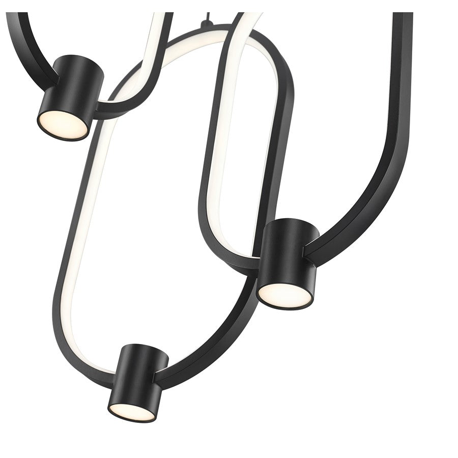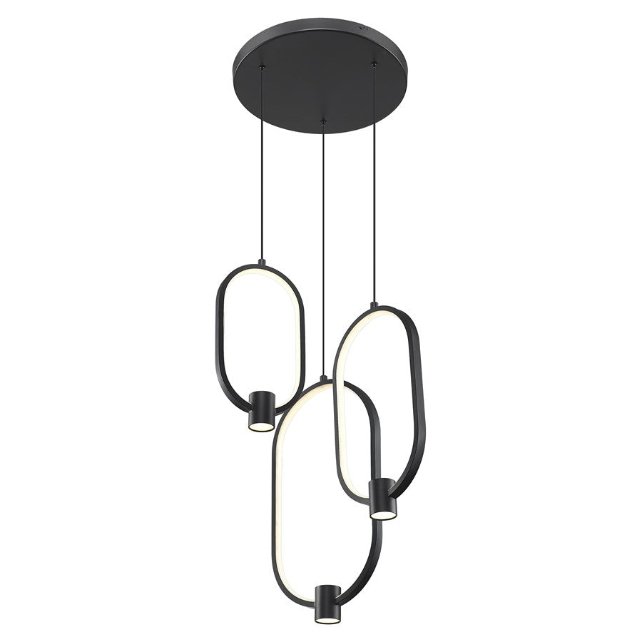 Make a splash in any space with a geometric motif as you illuminate kitchens, bedrooms, and living rooms. This three-light oval LED chandelier delivers the classic open metalwork look with matte black finish aluminum creating suspended oval luminaires with dimmable LED downlights. A playful narrative unfolds in a fixture created for festive, bold style.
